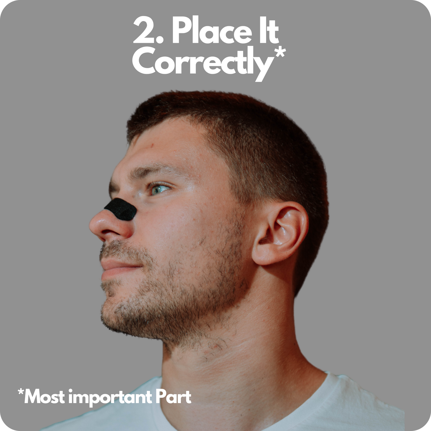 Внимателно постави лепенката за нос на носа си. Убеди се, че е правилно позиционирана. След това нежно натисни краищата и леко потъркай, за да я залепиш на място.